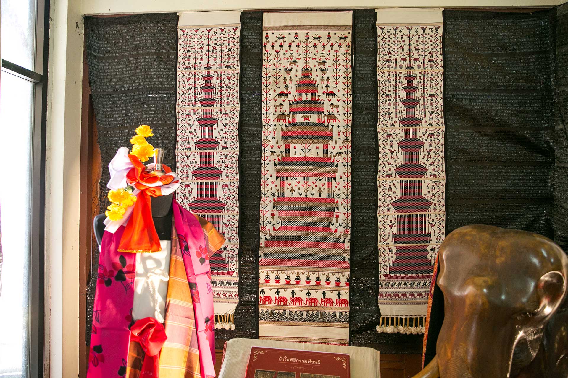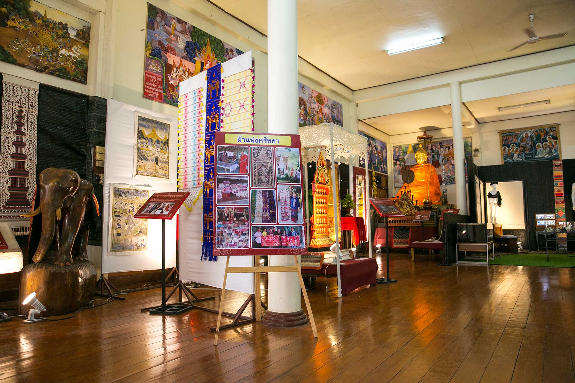 ผ้าแห่งศรัทธา หมายถึงการใช้ผ้าในพิธีกรรมทางพระพุทธศาสนา และผ้าในวิถีชีวิตที่เกี่ยวกับคนล้านนาภาคเหนือตอนบน พบว่ามีการใช้ผ้าทั้งผ้าพื้นที่เป็นฝ้ายและไหม ใช้เทคนิคการทอผ้าทอ เทคนิคจก เทคนิคขิด เทคนิคการปัก การมัดย้อม และเทคนิคการตัดปะติด (กระดาษ) เพื่อการตกแต่ง รวมถึงการใช้วัสดุอื่น เช่น เหลื่อม กระจกจืน และวัสดุที่มีค่าอื่นๆ เพื่อสร้างผ้าในการถวายเป็นพุทธบูชา อุทิศให้กับผู้ตาย ทั้งงานมงคลและงานอวมงคล มีการออกแบบและถักทอเย็บ ทั้งที่เป็นเครื่องประดับตกแต่งไว้ใช้ในชีวิตประจำวัน ใช้เป็นสัญลักษณ์ หรือการเขียนตัวอักษร ซึ่งมีการแยกประเภทคือ ผ้าที่ใช้ในพุทธศาสนา ในพิธีต่างๆ เช่น พิธีบวช พิธีพุทธาภิเษก พิธีงานศพ ผ้าเป็นเครื่องใช้ เช่น ผ้านั้ง ผ้ากราบ ผ้าที่เป็นเครื่องนุ่งห่ม รวมไปถึงผ้าของพระสงฆ์ เช่น ผ้าจีวร ผ้า สังฆาติ ผ้าในชีวิตประจำวัน เช่น ผ้าห่ม ผ้ากั้ง ผ้าสะวาย เป็นต้น
